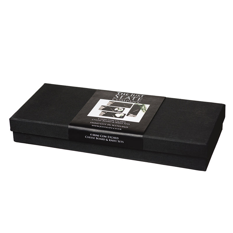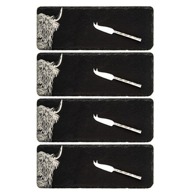 Set of 4 Highland Cow Mini Slate Cheese Board & Knife Set