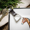 This silver plated Stirrup Key Ring is perfect for any horse lover. This key ring is designed in a stirrup shape, complete with leather detail, adding a stylish yet classic element to your key chain. Keep your keys organised in style while showing off your equestrian flair.