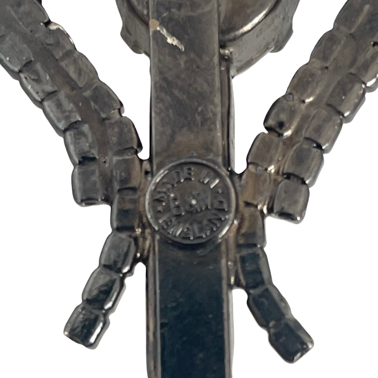 Crafted in England, this brooch is set with brilliant clear crystals, arranged to dazzling effect across the wings and body. The intricate design and generous scale make this a true statement piece—whether worn on a lapel, scarf, or as a standout accessory on eveningwear.