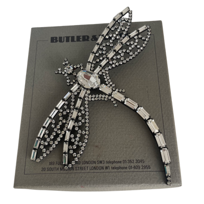Vintage Butler & Wilson Dragonfly Brooch – 1980s Statement Crystal Brooch (with Original Box)