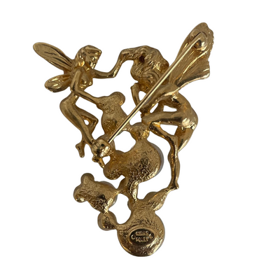 Enter the whimsical world of Kirks Folly with this enchanting fairies and bubbles gold tone brooch.