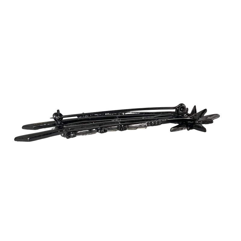 Exuding classic Butler & Wilson glamour, clear crystals are set against sophisticated Japanned metal.