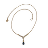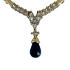 Elegant and timeless, the necklace features a graceful V-shaped design adorned with sparkling clear crystals, finished with a glossy black lucite teardrop pendant.