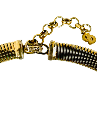 A beautifully crafted vintage Christian Dior gold tone choker necklace. A classically designed flexible 'Omega' necklace with woven detail centrepiece.