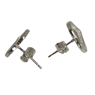 A lovely classic pair of hand made textured silver open heart stud earrings.