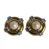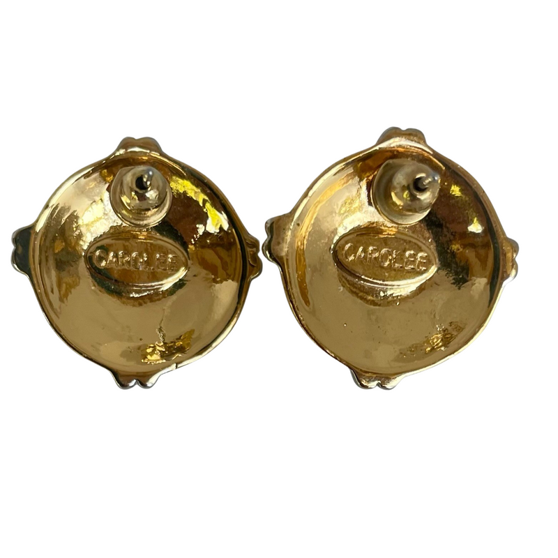 A lovely pair of faux mabé pearl gold-plated stud earrings with silver tone detail, signed Carolee.