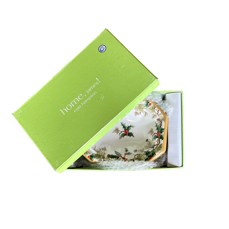 Crafted in ceramic in Sandringham pattern, the ivy leaf an berry design is on a white ground with honey-coloured trim. The bowl is beautifully presented in its original lime green packaging and has not been used.