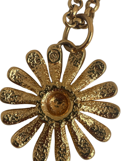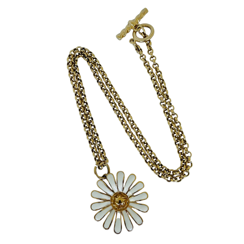 A beautiful vintage cream enamel gold tone sunflower pendant necklace.