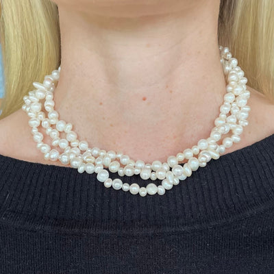 This timeless strand of pearls will add a touch of chic to your look - the perfect accessory for any outfit. It can be worn as a three strand necklace, or as a torsade (see images).