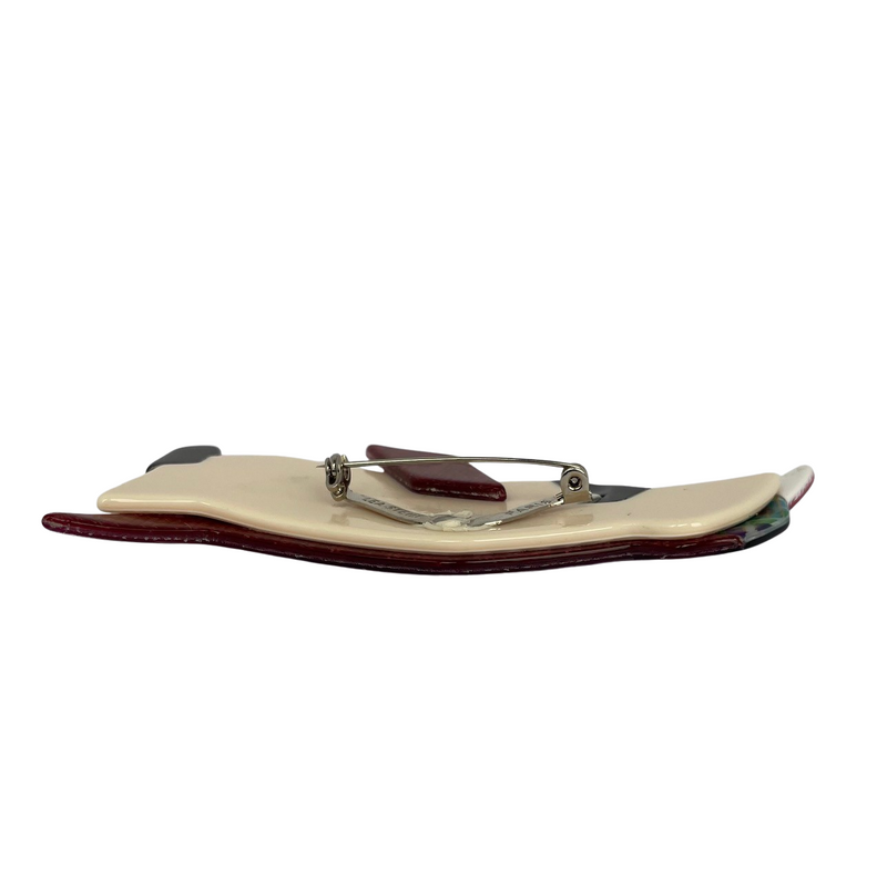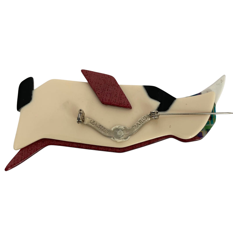 Léa Stein, born in Paris in 1936, has been creating her instantly recognisable jewellery since the early 1960s. She pioneered a unique approach to working with celluloid and plastics, developing intricate, multi-layered designs alongside her husband, chemist Fernand Steinberger. By laminating and shaping ultra-thin sheets of celluloid acetate, then baking, cooling, and cutting them - a process that could take months - Lea Stein produces one-of-a-kind, hand-crafted pieces. Her work is instantly recognisable for its bold colours, textures, and inventive patterns, making her creations highly sought after by collectors worldwide.