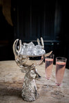 This small punch bowl, with stag's head crafted from nickel-plated aluminium holds a stainless steel bowl with his sturdy antlers.