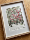 A glorious watercolour painting of trees in winter by artist Rod Craig.